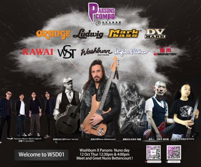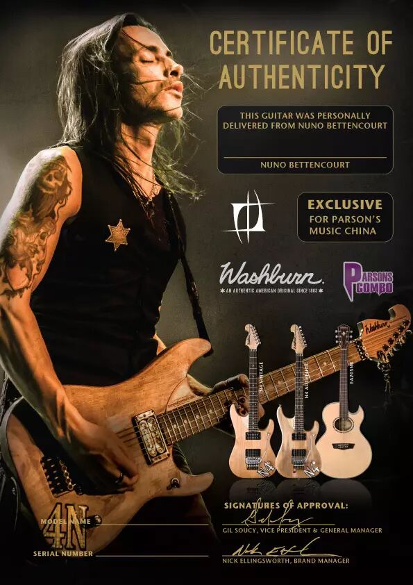 现场购买Washburn Nuno签名款系列吉他,即可获得现场Nuno亲笔签名和限量吉他授权书,并有限量Nuno T恤赠送。