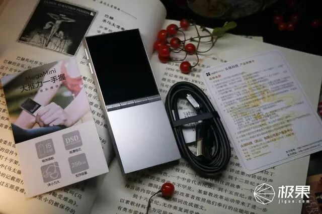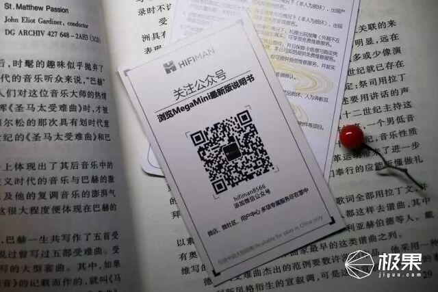 包装内除了MegaMini主机外,仅有一根用于连接电脑进行音乐拷贝或固件升级的USB数据线,一张保修卡,一张产品简介,从照片中,我们好象没看到常态的说明书!?是的,MegaMini随机是没有说明书的。它的说明书是以电子版形式存在HIFIMAN的微信公众号内了。要想查看只能是先加入HIFIMAN公众号,这个设计不论是从环保、还是方便度,以及品牌客户交流等都是一个很不错的方式。此举非常值得全球产品的推广与借鉴。