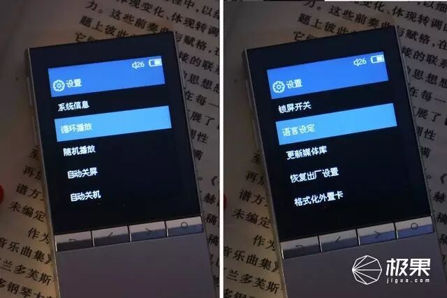 从实际操控来讲MegaMini的按键布局更为合理,能非常轻松地适应并一手操控所有按键。主机正面中间分布有返回、上一曲,下一曲,播放/暂停/确定/解锁屏,MegaMini的左侧顶部是音量加减按键。另,任一键都可点亮屏幕。