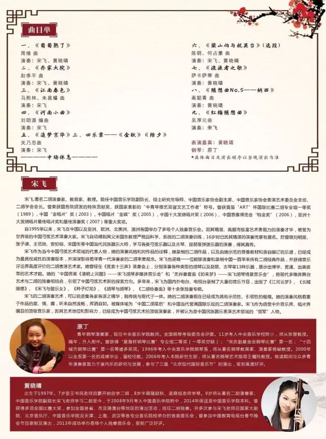 随后,《江南春色》《河南小曲》及【追梦京华】之《金秋》《除夕》等不同风格、不同地域的二胡独奏曲目逐渐亮相。