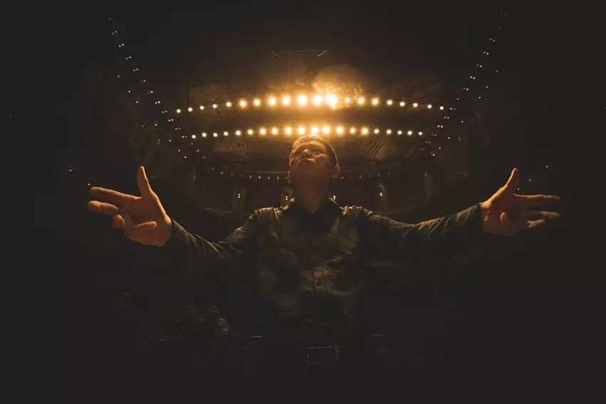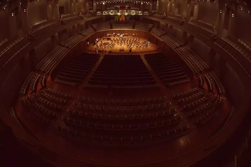 尝试用广角镜头,发现画面不够气派与震撼。简单粗暴直接装上了鱼眼,15mm端的成像恰到好处。剧院上空耀眼的顶光,甚至影响了对焦速度,不过已经无法阻挡我了。