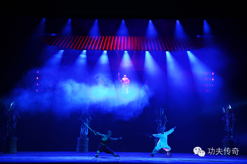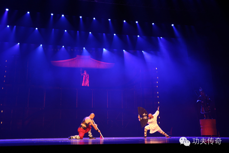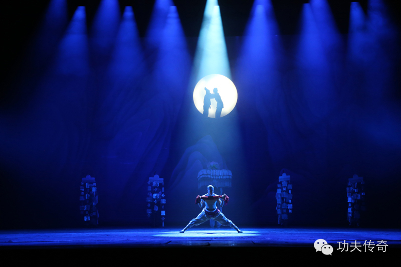 演员在一阵阵佛号与钟声的恢弘齐鸣中登场,正式拉开了《功夫传奇》的演出序幕。没有过多的灯光特效,仅靠音乐就使人感受到中国传统武术文化的厚重。“即使不看画面,只听音乐,也能感受到情节的起承转合,感受剧中人物的生死离别与生命轮回”《功夫传奇》的作曲——著名作曲家郑冰说道,这便是《功夫传奇》音乐故事思维的魅力。