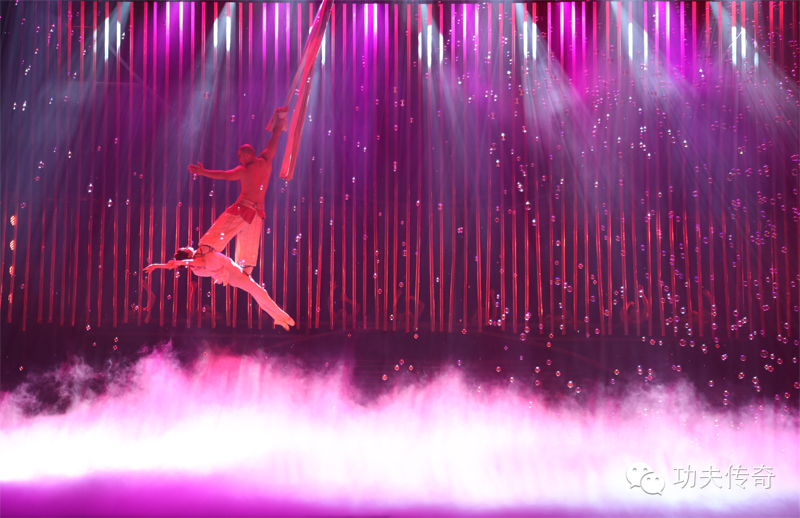 音乐营造的幻境氛围加强了绸吊双人舞的朦胧优雅之感