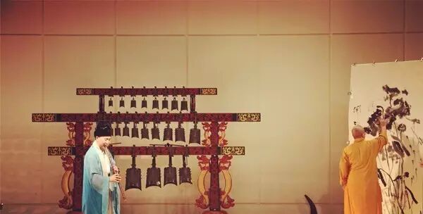 ▲《幽谷闻禅》即兴演奏 主奏:贺小帅 少林寺艺僧院院长责成禅师现场泼墨