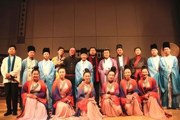 音乐会结束后,现场观众仍沉静在笛箫的美妙音乐声中,久久不愿离去,纷纷登上舞台与“中原箫帅”贺小帅及其他的演员合影留念。有些观众还很有兴致试探性的敲起了编钟、编磬等展演乐器,近距离的感受古代乐器散发出的神奇魅力。