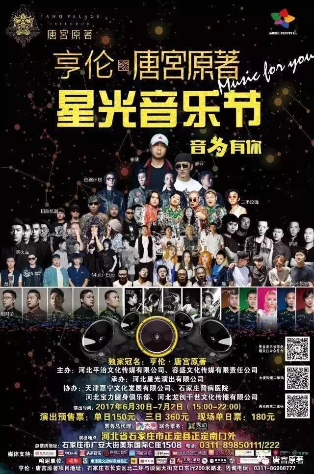 亨伦·唐宫原著与星光音乐节共同致力于社会公益事业的组织和投入。本次活动帮扶对象为贫困地区留守儿童等群体,音乐节现场将进行爱心捐款活动,为石家庄周边贫困地区捐赠爱心善款,让爱与音乐同在。