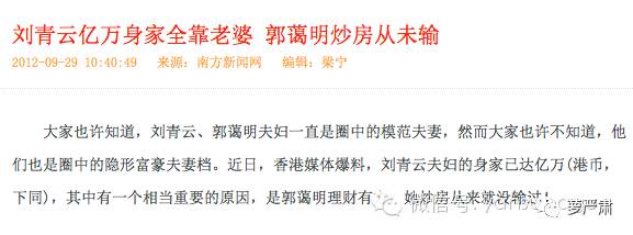 但是请注意刘青云,自己是影帝,有高知说是老婆理财,炒房从来没输过,身家过亿,他一直过着普通的香港市民生活……