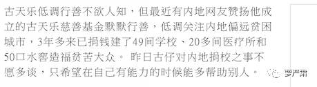 港媒报道中披露了古天乐做善事的细节:专门派监察人员去内地城镇了解需求,还要监督工程进展,防止出现豆腐渣工程,但做了这么多却秘而不宣↓