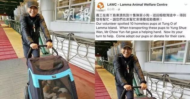 今年3月,香港的“南丫岛动物保护组织”在社交网站上发了一张照片,说义工救助流浪狗的路上,碰到周润发帮忙送小狗