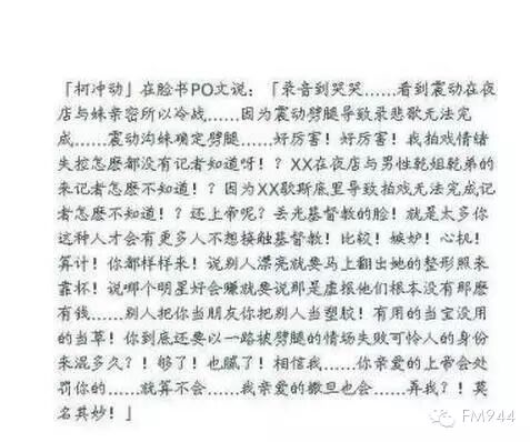 与萧亚轩分手后,facebook有个署名“柯冲动”的人在网上狂数一名女生的罪状,从蛛丝马迹中看这个人应该是柯震东本人,也许是年少轻狂,或是小号以为无人知,措辞非常激烈。