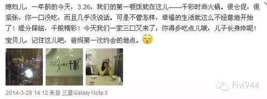 曾让不少女粉丝喊出“要嫁就嫁安心男”的“丑萌老实”的王迅,因在小号上秀恩爱而被人八出,结果,王迅藏了2年的90后老婆浮出水面。仔细看“徐杨的幸福时光”,你可能以为这是哪位痴情男为爱留下的爱情日记呐:动不动就跟娇妻秀亲亲,为老婆贴心的自制酸奶感动,连两人相爱的天数他都铭记在心!