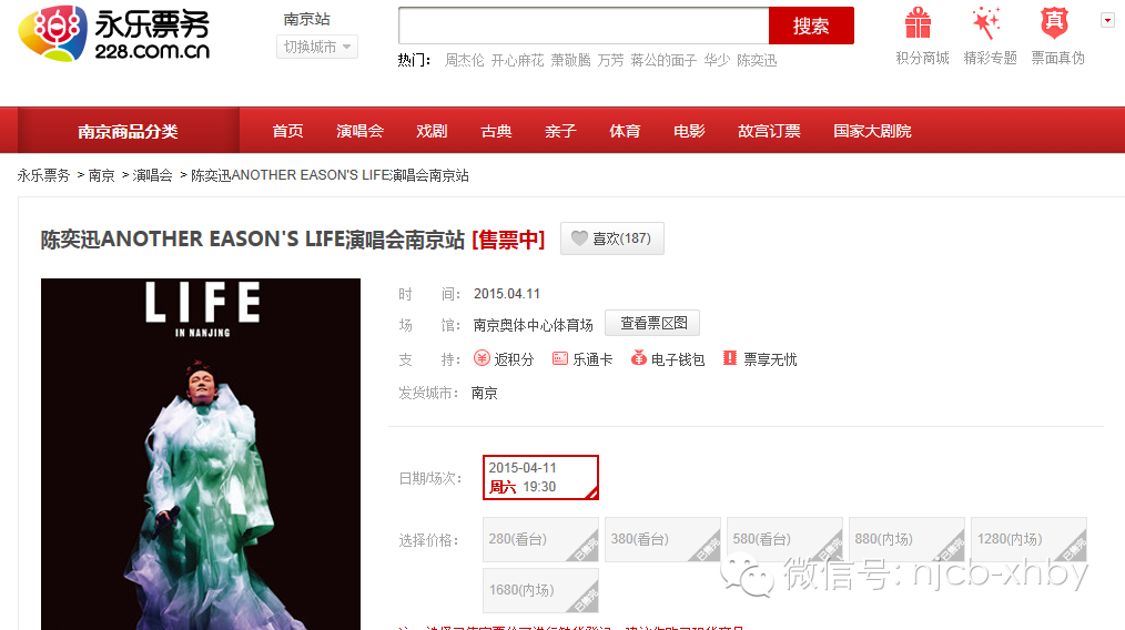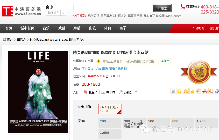 演出名称:陈奕迅 ANOTHER EASON’S LIFE演唱会-南京站