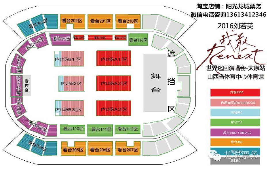 小刘注:演唱会在山西汾酒男篮主场山西省体育中心举行,室内馆,无跑道,因为前排离舞台很近,所以舞台不会很高,所以内场靠后的观众可能被前面的歌迷挡住。平的么,所以部分看台会比内场后面舒服些。