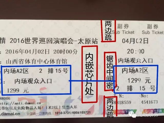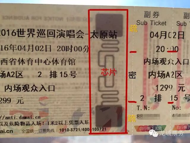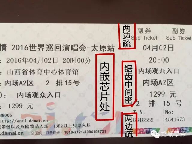 2、2016年大麦采用芯片票纸,在副券右侧会有明显的芯片嵌入!票纸背后有烫金线,正面有。