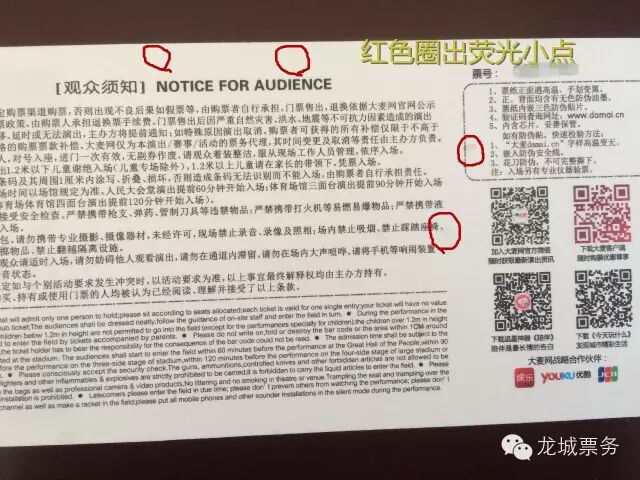 3、真票用荧光灯一照,会出现小光点,假票没有,现场检票人员手里拿的就是荧光灯。