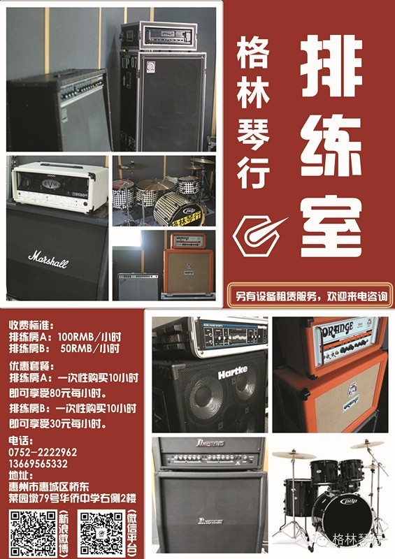 (凡报名的学生乐队即送格林排练室4小时排练时间)