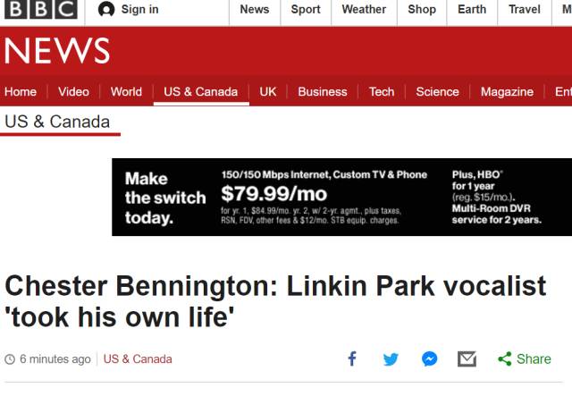 Chester的消息一出,迅速登上了各大媒体的头条。