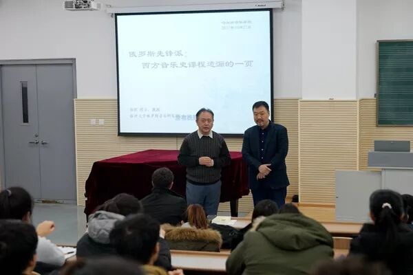 11月22日下午,俄罗斯音乐研究专家彭程做客音乐学系第十期新知讲堂,在哈尔滨音乐学院主楼A117室讲授“俄罗斯先锋派−−西方音乐史课程遗漏的一页”,讲座由学院副院长陶亚兵主持,音乐学系全体学生及部分老师参加。