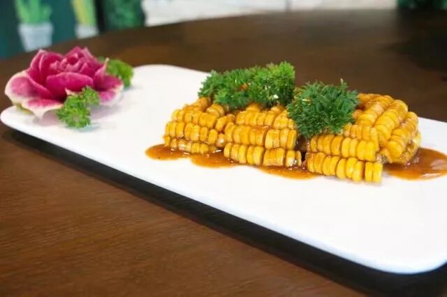 开始我以为是烤玉米,但其实不是,玉米是蒸熟的,淋上颇有风味的酱汁,即能满足口味又不用当心上火,简直完美搭配。且玉米是老少皆宜的食物,具有降血压降血脂等功效,对减肥也很有帮助哦!