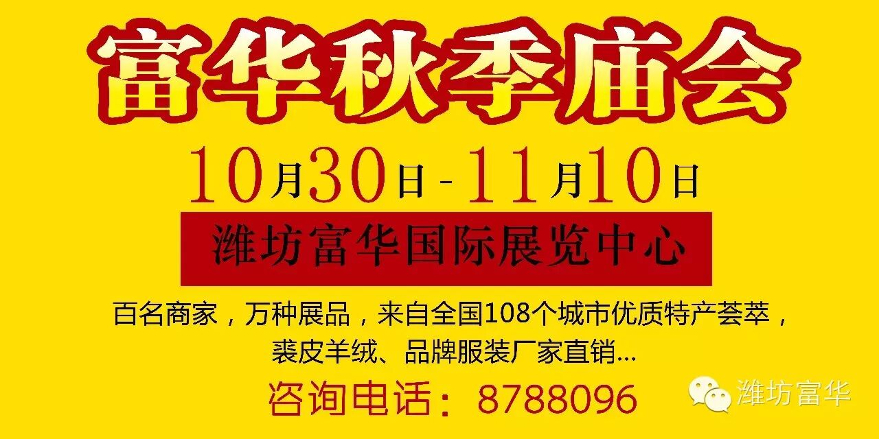 最嗨皮的庙会来了!10月30日-11月10日,富华展览中心秋季庙会开始啦!名优特产、服装服饰、红木家具、各地美食,一起来嗨皮!