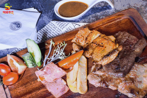 肉食主义者看到会双眼发光的,一道粗暴の五拼扒,猪扒+牛扒+鸡扒+培根+热狗,五种扒相拼让你一道菜,吃东五种不同的口味,香味四溢的扒,肉质鲜嫩,简直是肉食者的最爱呀!