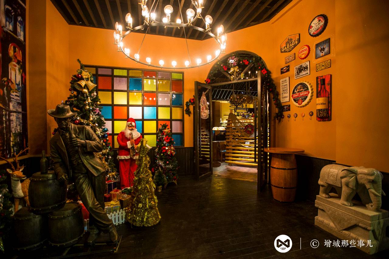 抬头一看,天花板上高高挂起酒桶,老式的电风扇在屋顶上盘旋,像来到了70年代的美国Bar呢,让你在增城就能体验不一样的异度风情。