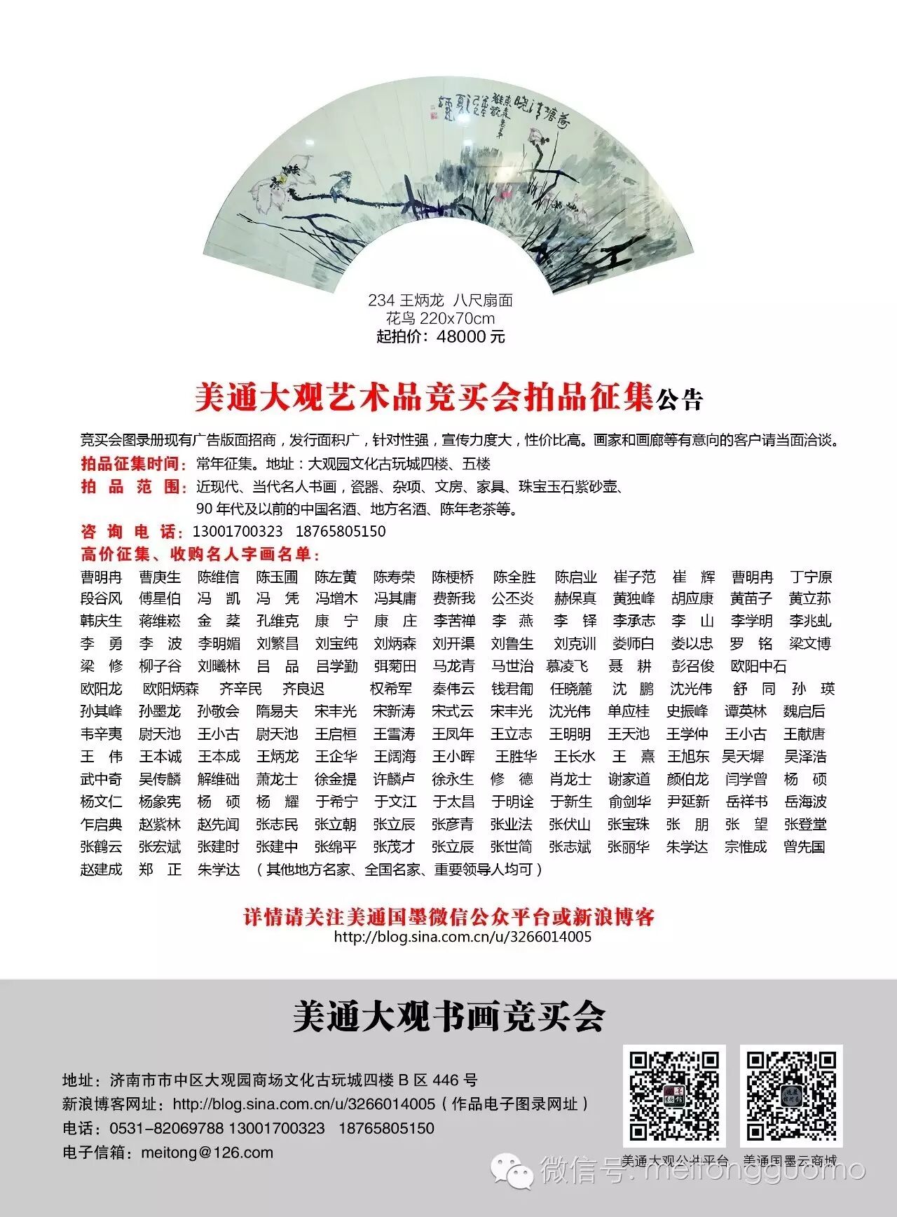 本次竞买继续与艺狐在线合作,对不能亲自前来、又不愿意电话委托的朋友,可通过艺狐在线竞价。艺狐预展肯新浪博客预展很快与大家见面。地址在济南大观园四楼文化城446号山东泰都艺术馆举办,在肯德基处有地下停车场,直达四楼,交通便利。山东泰都美术馆建筑面积350多平方,使用面积260平方,可举办艺术展览、书画竞买会、展销会等活动。艺术馆欢迎艺术家们前来办展、合作交流,我们将给大家提供良好的服务。联系电话:13001700323,李先生,18765805150,乔先生。