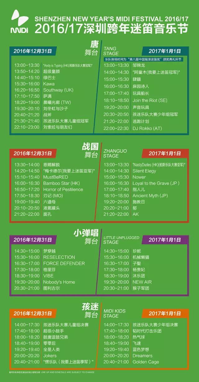 此次跨年迷笛音乐节深圳站将分为唐舞台、战国舞台、小弹唱舞台、孩迷舞台四大部分,网罗近30支知名乐团/乐手,演绎摇滚、电音、温情等等风格独特的曲风。在夜色、音乐、钟声和欢呼组成的立体环绕中,衍生出勇气和力量……