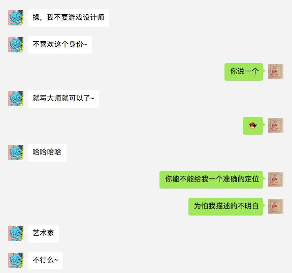 “擦,我不要游戏设计师,不喜欢这个身份,艺术家不行么?”