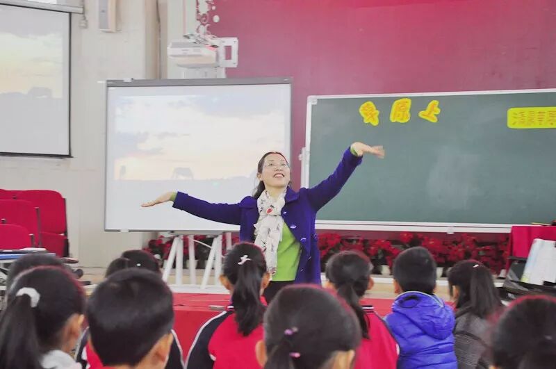 邹老师展示的是三年级的唱歌课《草原上》,紧密结合三年级学生特点和学生实际生活,通过创设情景,激发学生的好奇心;采用游戏的形式,听觉领先,摸唱紧跟,反复训练,强化对音准的掌握;引导学生用自然、圆润、柔和的声音,连贯流畅的气息有感情的演唱歌曲。