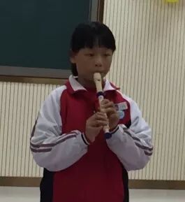 四年级的孩子们从三年级音乐课就开始学习竖笛。通过举行班级竞选,最后24名同学脱颖而出,参加“笛声飞扬”竖笛独奏比赛。“比赛开始!有请第一位选手张少安给我们带来《荷塘月色》”作为第一个出场的参赛选手们,少安同学明显感到略带紧张。但这并不影响他发挥。竞赛在最后一位选手郑茹娇的《小小鼓号手》的笛声中结束了。本次比赛展示了课堂乐器学习的成果,让学生体会到音乐课堂乐器学习的乐趣。
