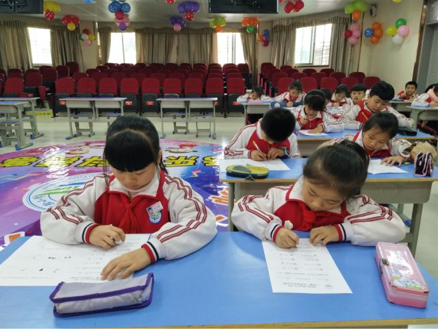 选手们过关斩将进入最后的比赛中来,与老师一起见证他们两年多来在音乐课堂中的学习成果。通过“听一听”选音组;“拍一拍”选节奏;“选一选”填乐器;“听一听”选歌名;“敲一敲”排顺序;“编一编”创节奏等形式进行笔试,各个认真审题专注做题。“乐理知识大比拼”激励了学生对课堂音乐知识的关注及兴趣,促进音乐的全面发展。