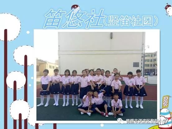 跟大家介绍一下我们“笛悠社”竖笛社团,我们社团现有社员30人,由四、五年级的学生组成,我们是一群热爱音乐喜欢表演的孩子。竖笛的音色优美动听,婉转悠扬,像小鸟的叫声一样。我们都很爱它!