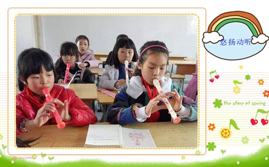 活动课上我们是一群活跃的小鸟,吹奏着动听的竖笛,聆听老师教授我们的知识。