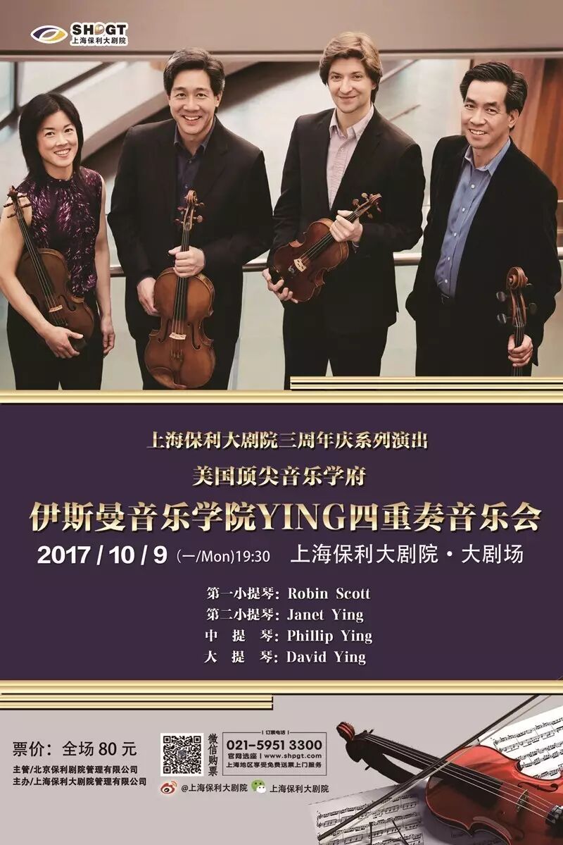 美国顶尖音乐学府--伊斯曼音乐学院YING四重奏音乐会