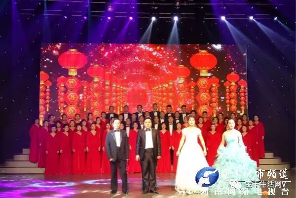 元旦文艺晚会在宝丰红叶合唱团表演的大合唱《阳光路上》中落下帷幕。 晚会结束,潘民中等市县领导上台与演职人员握手,祝贺演出圆满成功,并与演职人员合影留念。