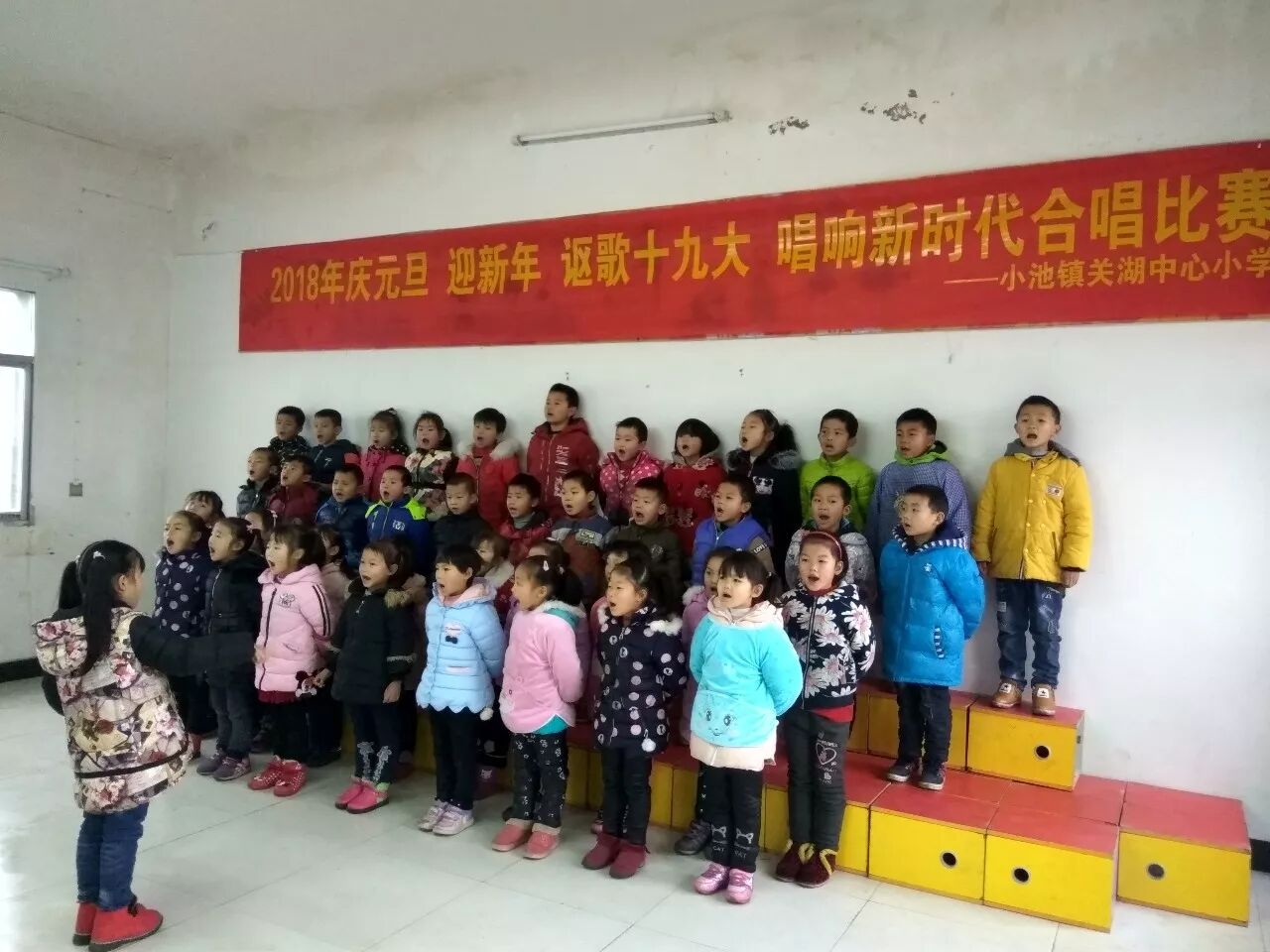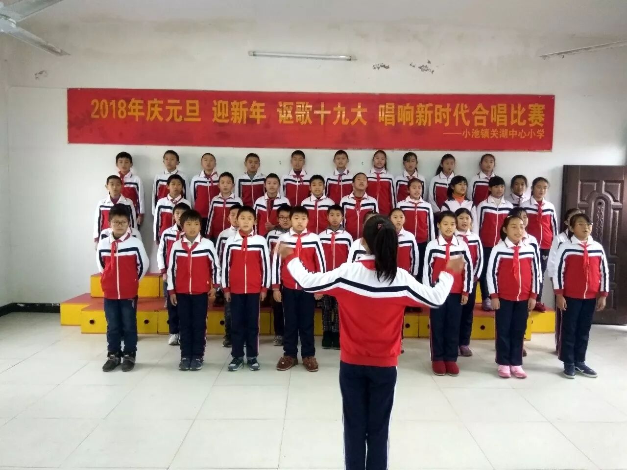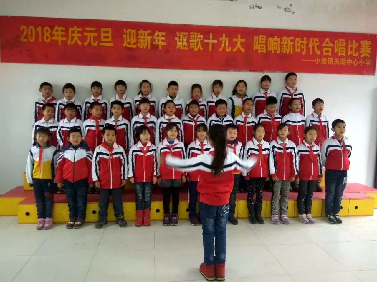飞扬的歌声,吟唱难忘的岁月;熟悉的旋律,演绎时代的乐章。为庆祝元旦,弘扬十九大精神,丰富校园文化生活,12月29日上午,小池镇关湖中心小学开展了“讴歌十九大,唱响新时代”红歌合唱比赛。