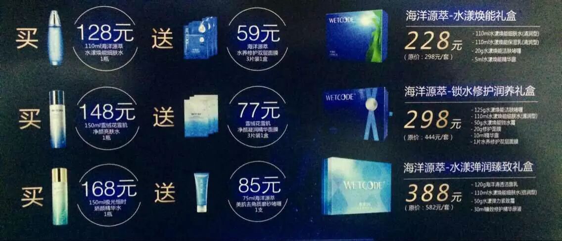 以上十种产品,凡购买任何一种产品即能得到25ml的水密码细肤水或亮肤水一支;