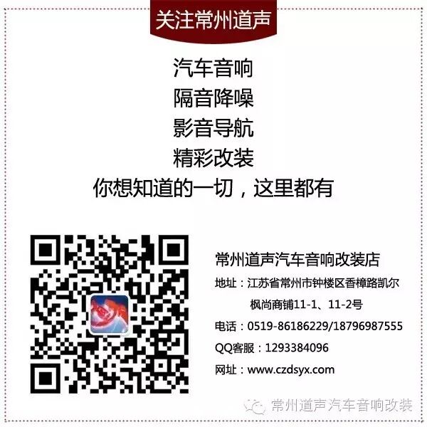 常州道声汽车音响改装旗舰店:专业汽车音响、导航、隔音等服务,总经理兼技术总监陈祥清先生是世界汽车音响竞赛组织(MECA)的国际裁判执裁员和国家汽车影音考评员,被授予行业金耳朵奖,汽车音响专家,测评专家等。常州道声是中国汽车音响改装50强、金匠奖音改十强店、欧洲EMMA白金会员店、汽车音响改装培训基地……