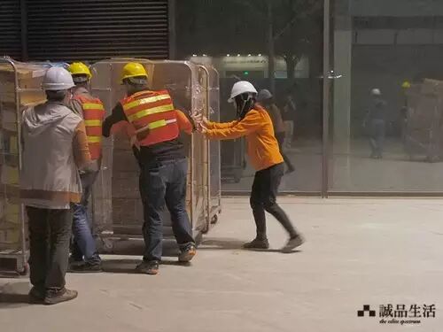 深夜,诚品书店的工作人员满心期待地等候着第一车书抵达