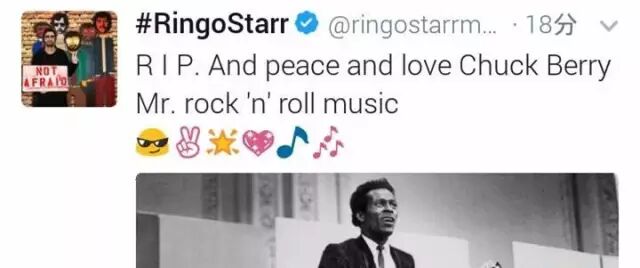 滚石乐队发表声明:“查克·贝里是一个真正的摇滚乐先驱,对我们产生了巨大的影响。查克不仅是一位杰出的吉他手、歌手和表演者,但最重要的是,他是一个独具匠心的作曲大师。他的歌曲将永远活着。”