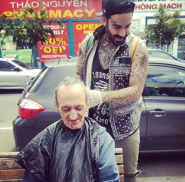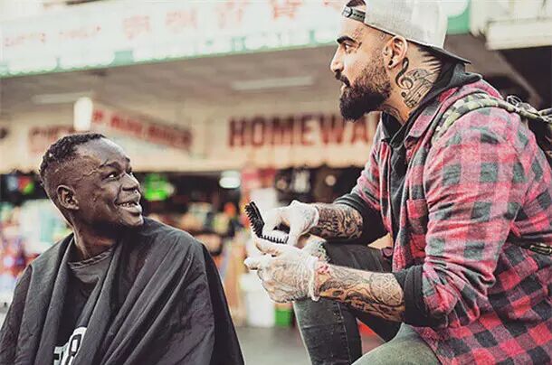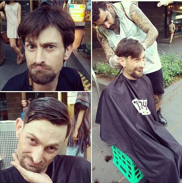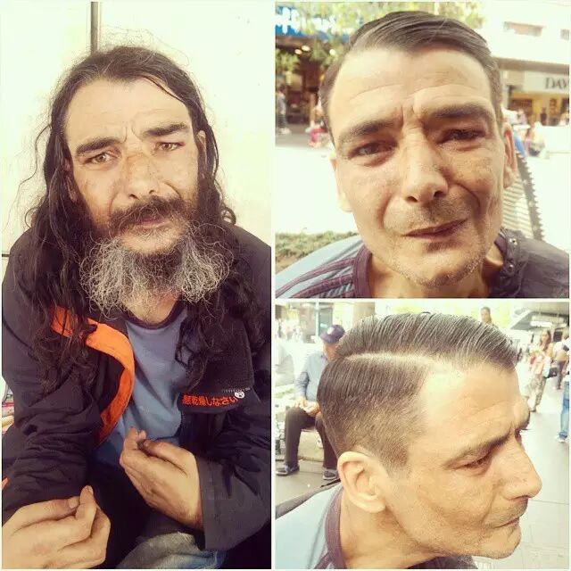 现在墨尔本街头转角遇到的都是发型帅气的流浪汉。这都是26岁Sobhani的功劳,每周只有单休的他,总会在休息那天踩着滑板穿街过巷为有需要的流浪汉免费理发