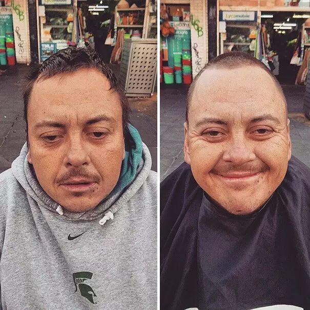 那些流浪汉,因为新的发型而露出了笑容。或许普通人无法领会,但于他们来说,不再被人用厌恶的眼光看待,就是一场新生