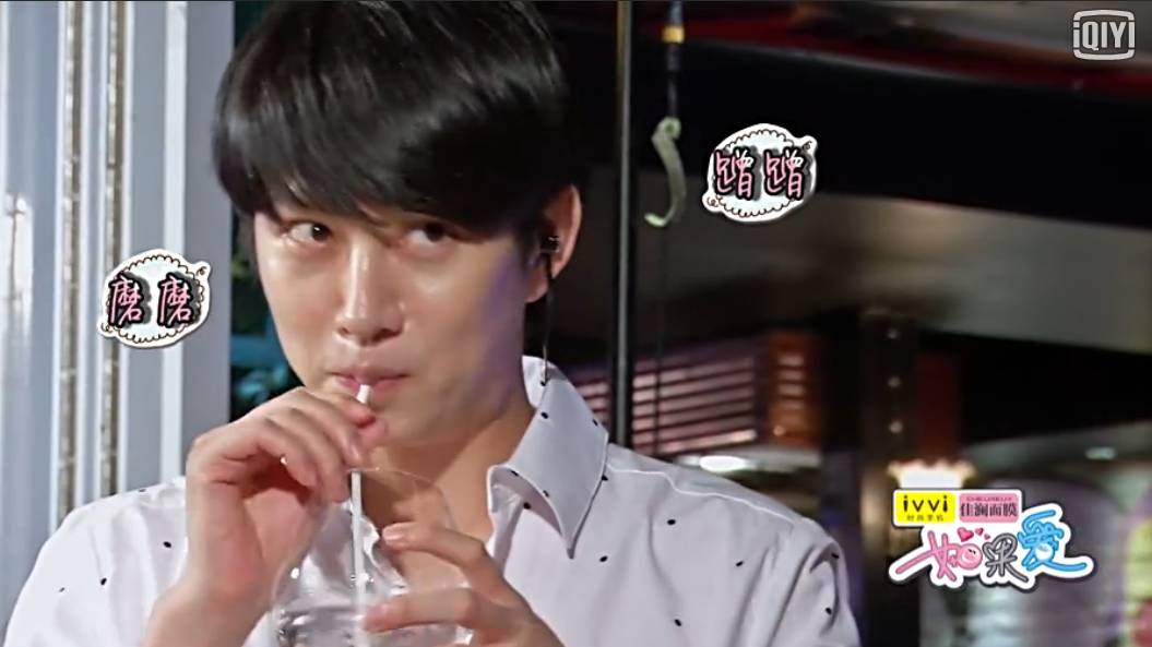 在酒吧里,希天才提议玩小蜜蜂,赢了的人在额头上亲亲,于是顺理成章地希澈欧巴赢了(澜姐也不知道为什么),只见他拿起饮料,磨磨唧唧扭扭捏捏的又是漱口又是确认自己口气是否清新,最后终于鼓起勇气,做出了这个行为: