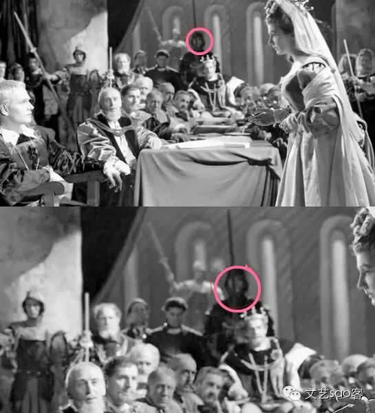 这是李老爷子当年在Laurence Olivier版《哈姆雷特》里跑龙套的照片,他演一个拿着长矛的卫兵,这是他的第三个银幕角色