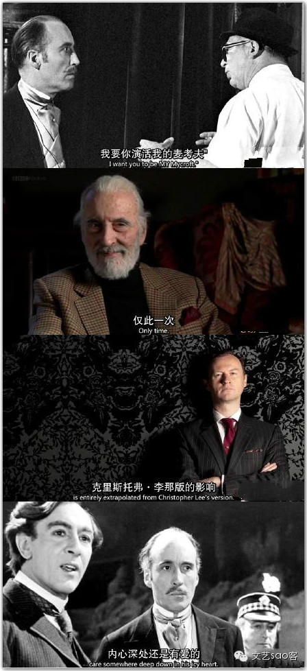 70年代中期,李老爷子厌倦了以往的戏路开始尝试出演主流电影,陆续出演了《福尔摩斯秘史》、《豪情三剑客》和《铁金刚大破金枪客》等,也正因为这些影片的成功,克里斯托弗·李开始引起好莱坞的关注,转战好莱坞的他出现在大量经典影片之中,恩,应该算大器晚成型。(上图为纪录片BBC的纪录片《如何成为福尔摩斯》,在老版福尔摩斯里李老爷子演过麦考夫)。
