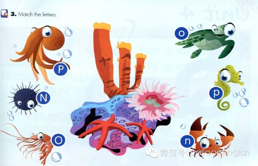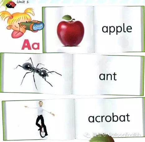 在教孩子学习字母时就要将每个字母的基本发音简单的给孩子区分开,让孩子有意识到每个字母有一个名字,在单词里还有一个发音。