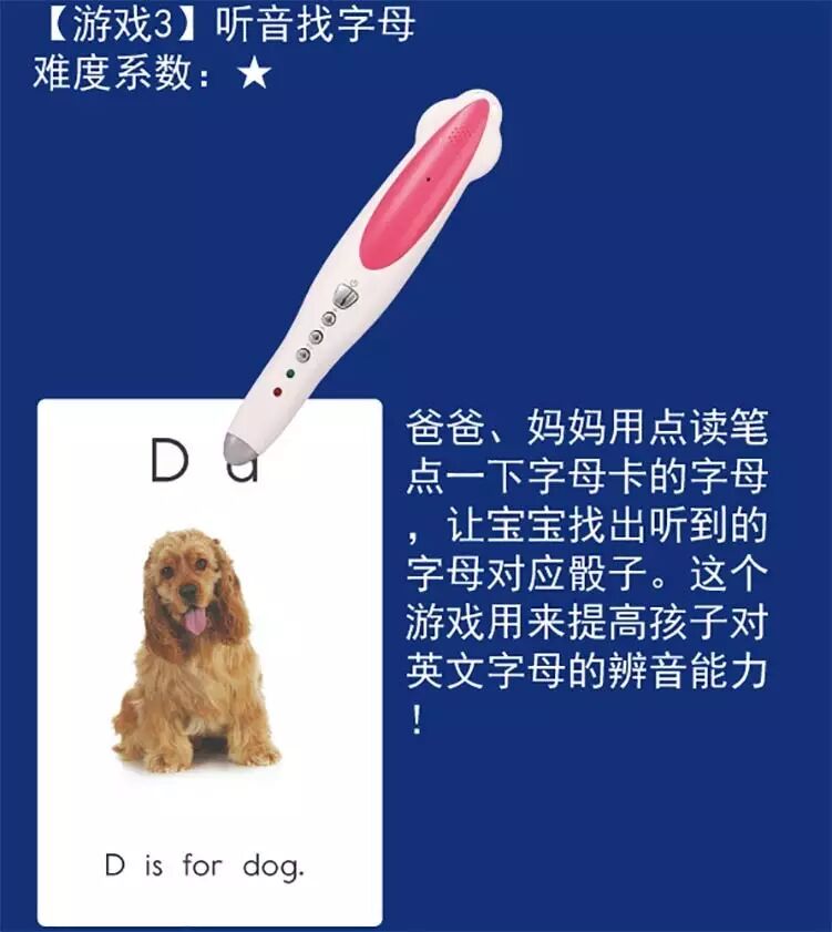 点不同的位置发出不同的声音,可以点字母,可以点物体,可以点句子。