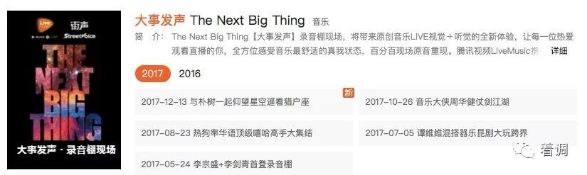 腾讯视频LiveMusic与街声合作《大事发声》源于之前在“简单生活节”合作中达成的共识。大家都意识到,音乐Live是很多面的,可大可小,对于歌手来说最小的Live就是在录音棚,其实这个做法国外的音乐人已经做过,就是把歌手最原始、最纯真的状态记录下来,只不过诸如BBC的节目是录播的,而《大事发声》是Live。