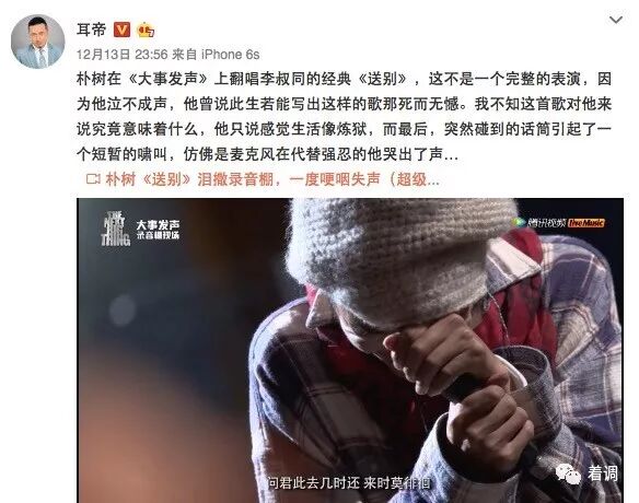 着调君作为朴树的歌迷,说实话也有被“朴树哭了”震撼到,因为连续在简单生活节和赤水音乐季看到朴树的表演,觉得他近期的状态不错,不说渐入佳境,至少不像早前每次演出都会有各种状况,为何突然在超级版《大事发声》失控?